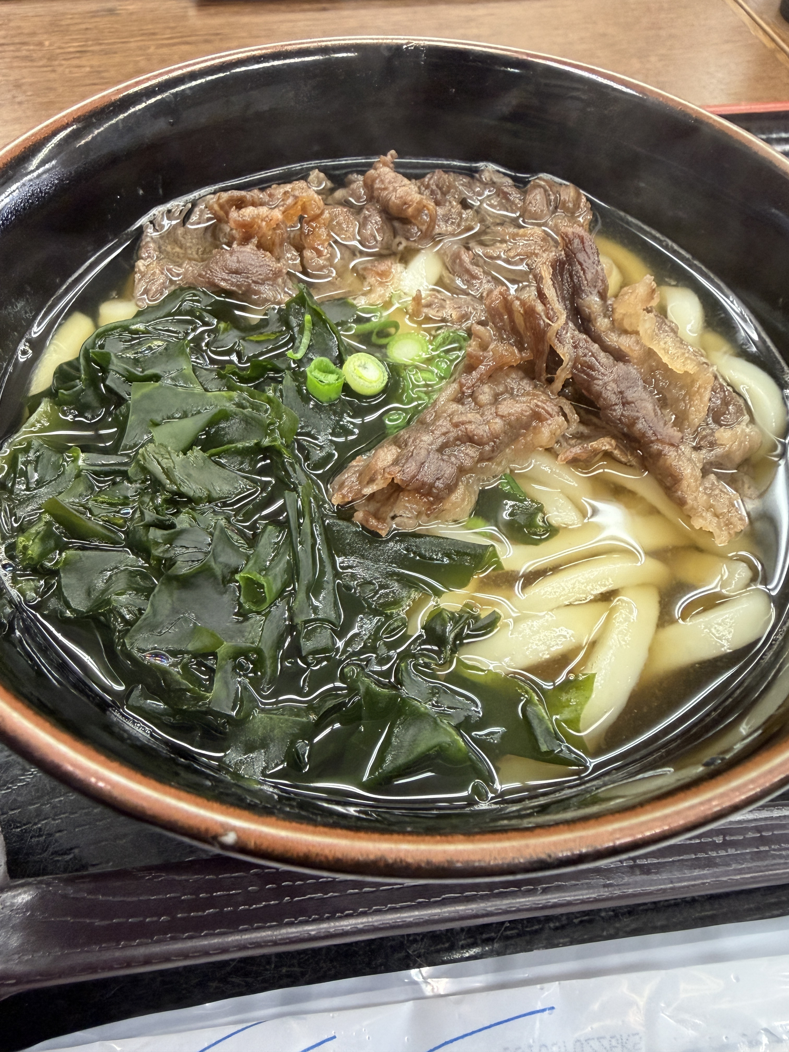 お肉の旨味がじんわりと溶け込んだ優しいお出汁が体に染み渡ります。長旅の移動で少し疲れた胃腸にも優しく、心までポカポカと温まるようなホッとする一杯です。